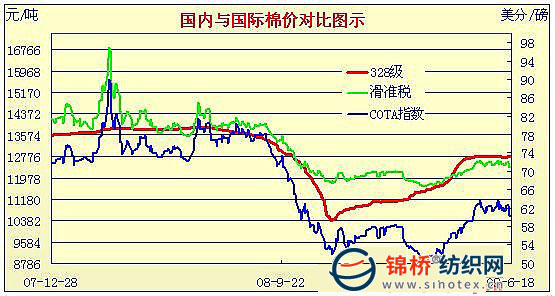 09年3月2日-09年6月18日國內(nèi)外棉價(jià)對(duì)比圖表