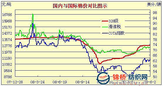 09年3月2日-09年6月3日國內(nèi)外棉價(jià)對比圖表