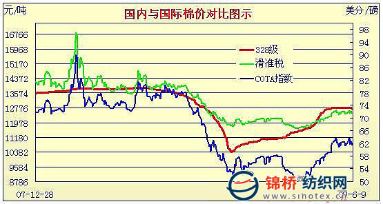 09年3月2日-09年6月8日國(guó)內(nèi)外棉價(jià)對(duì)比圖表
