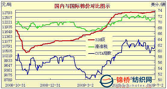 09年3月2日-09年7月2日國內(nèi)外棉價對比圖表