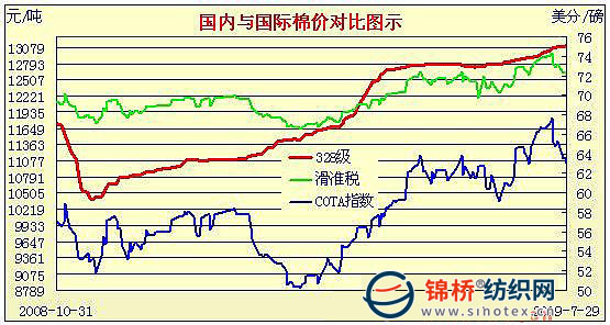 國(guó)內(nèi)外棉價(jià)對(duì)比圖表(6月1日-7月29日)