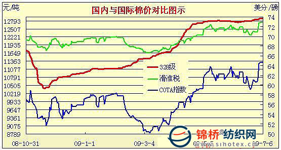 09年3月2日-09年7月6日國內外棉價對比圖表