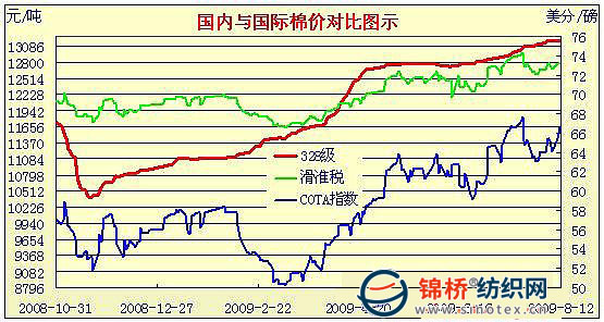 錦橋紡織網(wǎng)—資訊頻道> 棉花信息> cotlook>正文 國內(nèi)外棉價對比圖表(6月1日-8月12日)