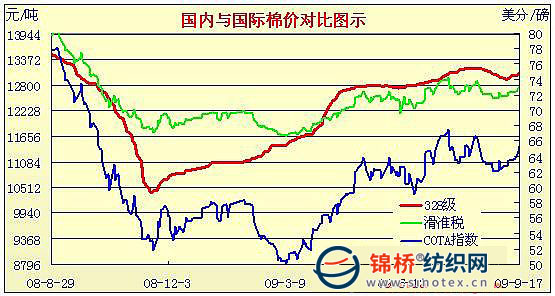 錦橋紡織網(wǎng)—資訊頻道> 棉花信息> cotlook>正文 國內(nèi)外棉價對比圖表(8月31日-9月17日)