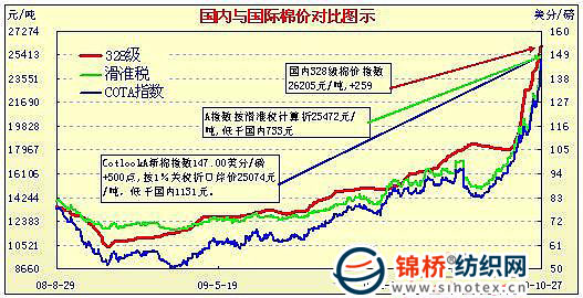 國內(nèi)外棉價(jià)對比圖表(9.30-10.27)