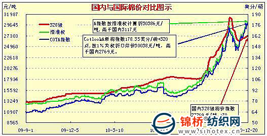 國內(nèi)外棉價(jià)對比圖表(12.1-12.21)