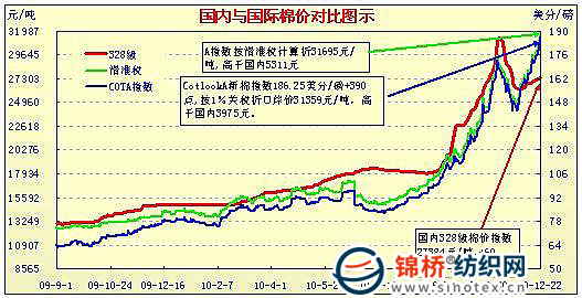 國(guó)內(nèi)外棉價(jià)對(duì)比圖表——突破182美分(12.1-12.21)