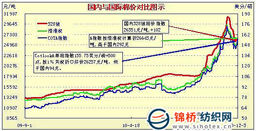 國內(nèi)外棉價對比圖表(11.1-12.3)