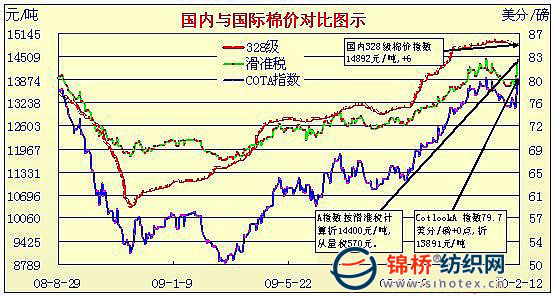 錦橋紡織網(wǎng)—資訊頻道> 棉花信息> cotlook>正文 國內(nèi)外棉價對比圖表(1.29-2.12)