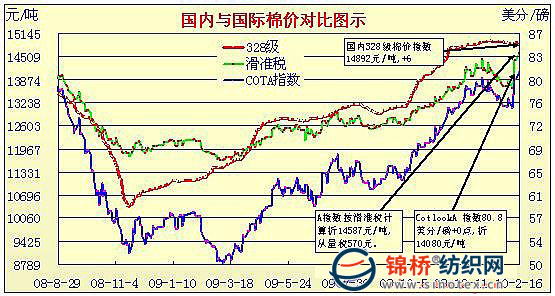 錦橋紡織網(wǎng)—資訊頻道> 棉花信息> cotlook>正文 國內(nèi)外棉價對比圖表(1.29-2.16)