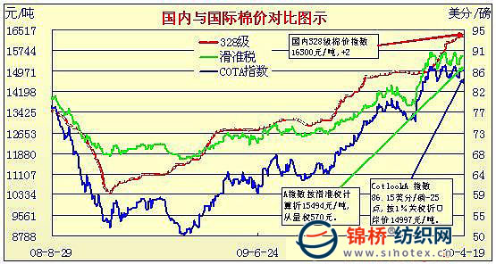 錦橋紡織網(wǎng)—資訊頻道> 棉花信息> cotlook>正文 國內(nèi)外棉價對比圖表(2.26-4.19)