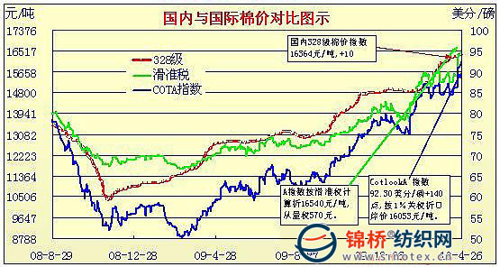 錦橋紡織網(wǎng)—資訊頻道> 棉花信息> cotlook>正文 國內(nèi)外棉價對比圖表(2.26-4.26)