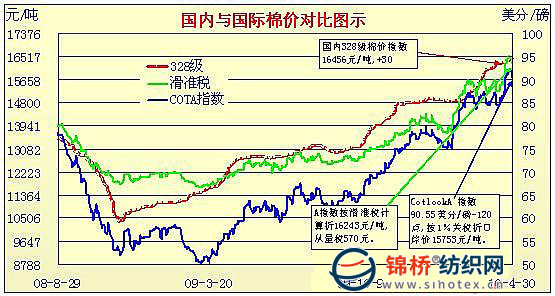 錦橋紡織網(wǎng)—資訊頻道> 棉花信息> cotlook>正文 國內(nèi)外棉價對比圖表(2.26-4.30)