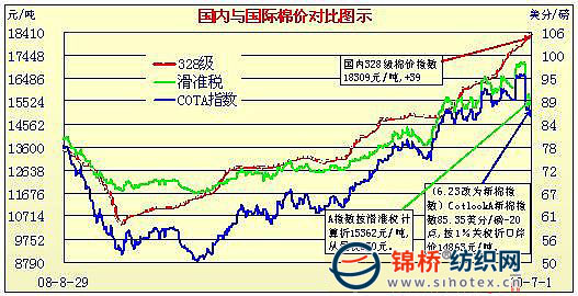 國內(nèi)外棉價對比圖表(6月1日-8月1