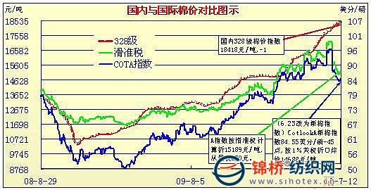 國內(nèi)外棉價對比圖表(6.15-7.12)