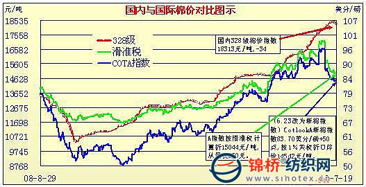 國(guó)內(nèi)外棉價(jià)對(duì)比圖表(6月1日-8月1