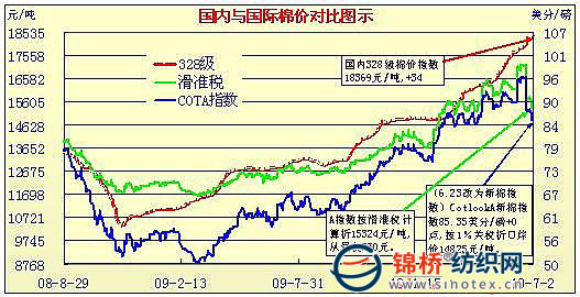 國內(nèi)外棉價(jià)對比圖表(6.25-7.5)