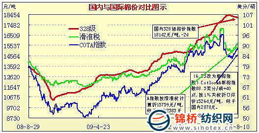 國內(nèi)外棉價(jià)對比圖表(7.01-8.09)