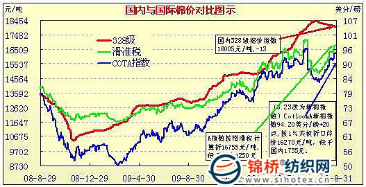 錦橋紡織網(wǎng)—資訊頻道> 棉花信息> cotlook>正文 國內(nèi)外棉價對比圖表(7.30-8.31)