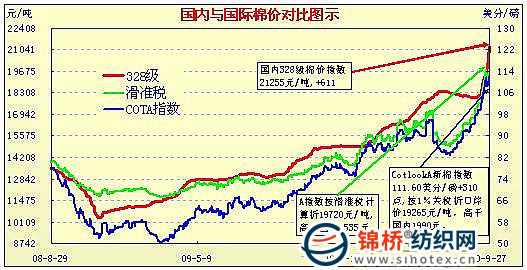 國(guó)內(nèi)外棉價(jià)對(duì)比圖表(7.30-9.21)