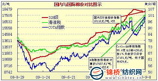 國內(nèi)外棉價(jià)對(duì)比圖表(7.30-9.6)