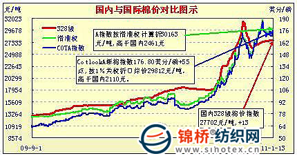 國(guó)內(nèi)外棉價(jià)對(duì)比圖表(11.1-11.30)