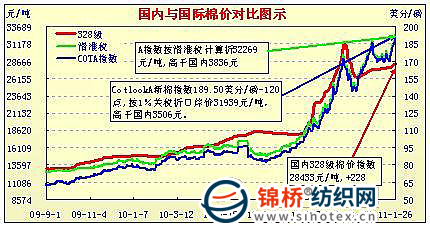 國內(nèi)外棉價對比圖表(11.1-12.3)