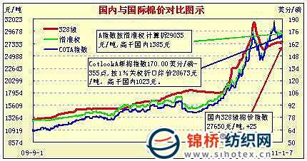 國內(nèi)外棉價(jià)對(duì)比圖表(11.1-11.30)