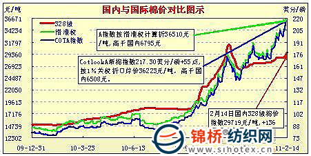 國(guó)內(nèi)外棉價(jià)對(duì)比圖表(1.31-2.14)