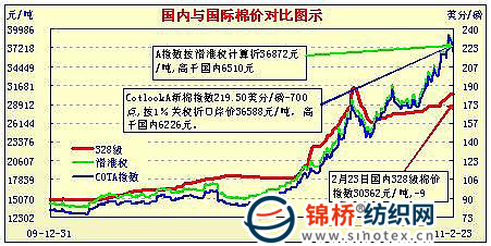 國內(nèi)外棉價(jià)對(duì)比圖表(1.31-2.23)