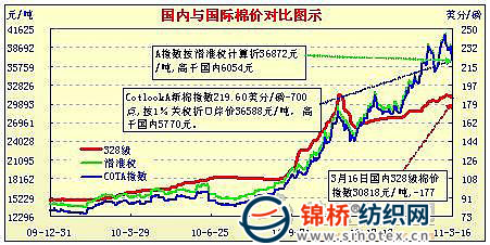 國(guó)內(nèi)外棉價(jià)對(duì)比圖表(10.15-11.5)