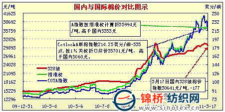 國內(nèi)外棉價(jià)對比圖表(2.14-3.4)
