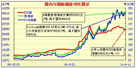 國(guó)內(nèi)外棉價(jià)對(duì)比圖表(3.21-4.11)