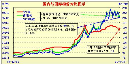 國(guó)內(nèi)外棉價(jià)對(duì)比圖表(3.31-4.18)