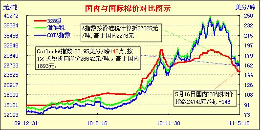 國(guó)內(nèi)外棉價(jià)對(duì)比圖表(4.15-5.16)