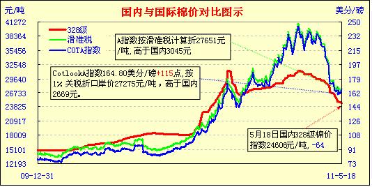 國(guó)內(nèi)外棉價(jià)對(duì)比圖表(4.15-5.18)