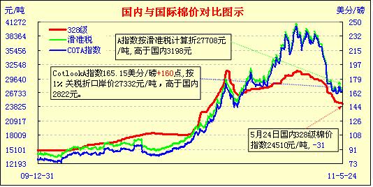 國內(nèi)外棉價對比圖表(4.15-5.24)