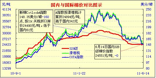 國內(nèi)外棉價對比圖表(5.20-6.14)