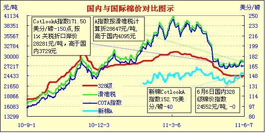 國(guó)內(nèi)外棉價(jià)對(duì)比圖表(5.20-6.6)