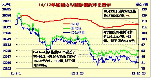國(guó)內(nèi)外棉價(jià)對(duì)比圖表(10-23)