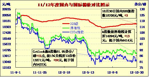 國(guó)內(nèi)外棉價(jià)對(duì)比圖表(10-30)