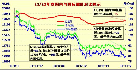 國內(nèi)外棉價(jià)對比圖表(11-9)