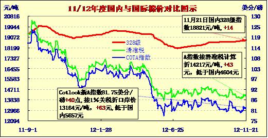 國(guó)內(nèi)外棉價(jià)對(duì)比圖表(11-21)