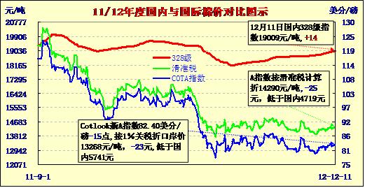 國內(nèi)外棉價對比圖表(12-11)