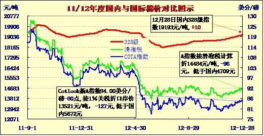 國內(nèi)外棉價對比圖表(12-28)