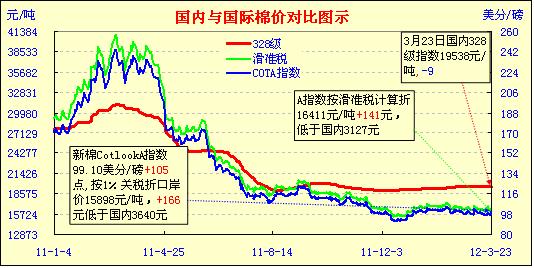 國內(nèi)外棉價(jià)對比圖表(3-23)