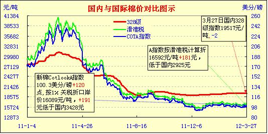 國內(nèi)外棉價(jià)對(duì)比圖表(3-27)