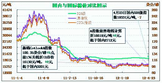 國(guó)內(nèi)外棉價(jià)對(duì)比圖表(4-23)