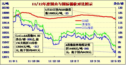 國(guó)內(nèi)外棉價(jià)對(duì)比圖表——內(nèi)外價(jià)差5000(5-23)
