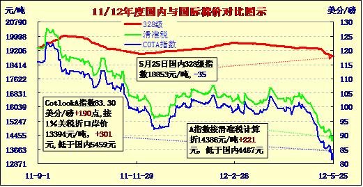 國(guó)內(nèi)外棉價(jià)對(duì)比圖表(5-25)